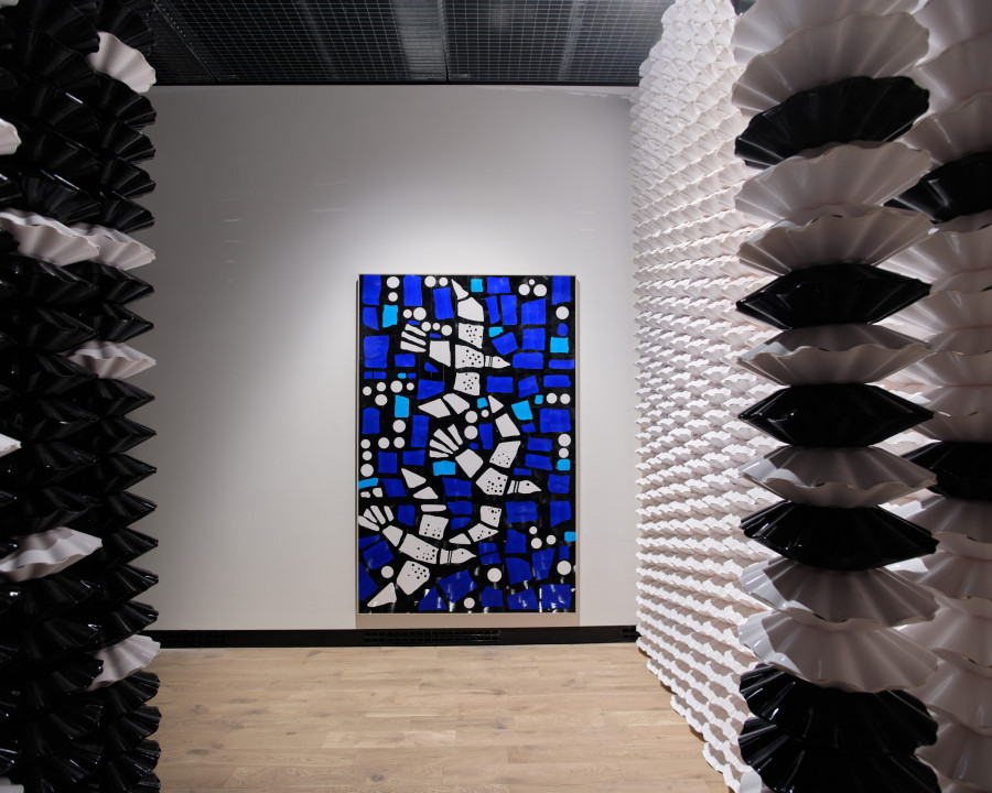 Gregor Hildebrandt's largest exhibition covers more than 20 years of his practice. Working mainly with analog sound storage mediums, the German artist creates sculptures, installations, and paintings with materials such as compression molded vinyl and audiotapes on canvas or cassette shells. Hildebrandt's work makes formal references to Minimalism and Abstract expressionism; it is also nourished by many literary, cinematographic, musical, and architectural inspirations. These cultural sources trigger both collective and personal memories.