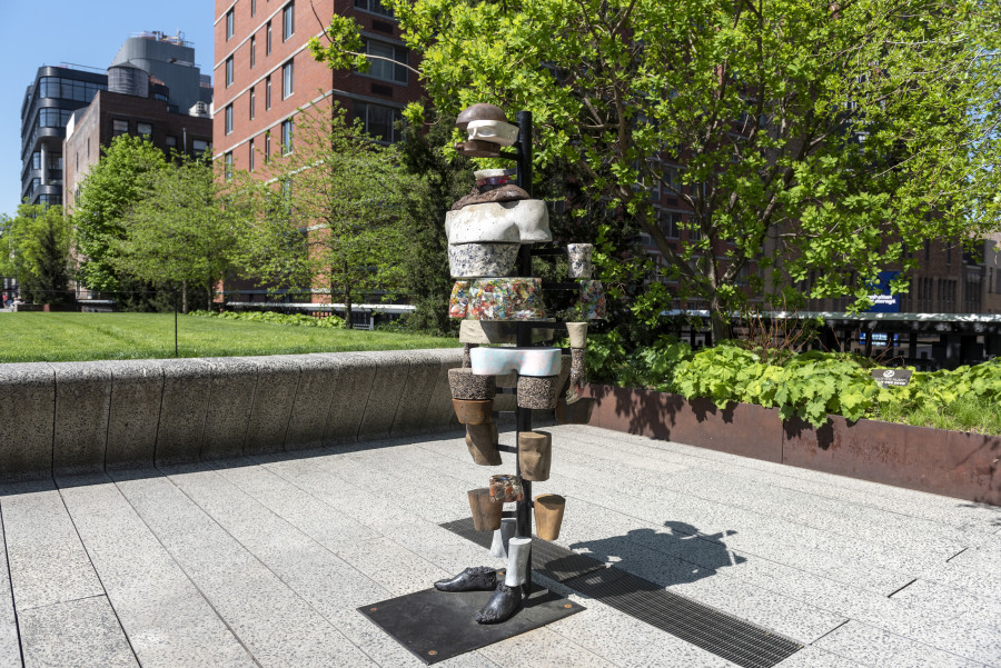 Mariechen Danz (b. 1980, Dublin, Ireland) is a Berlin-based artist who researches representations of the body, investigating the way it has been given meaning in various cultures, epochs, and fields of knowledge. In her installations, performances and music, often in collaboration with other artists and musicians, the human body emerges as a contradictory structure and a scene of conflict—an utterly contaminated zone, both politically and historically. For the High Line, Danz presents a new iteration of The Dig of No Body, a sculpture that references anatomical learning models segregated into individual parts, like a life-sized soil sample in movable layers.The work evokes our changing relationship to the earth, as well as the popular contemporary name “Anthropocene,” which suggests humans’ creation of a new geological era.