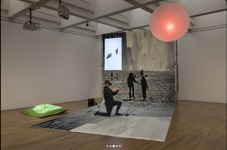 In der Ausstellung “Schöne neue Welten” machen gerade jene Grenzen den Reiz der gezeigten Virtual-Reality-Arbeiten aus. Gelegentlich zuckt und ruckelt es, wenn man bei Florian Meisenberg dank Leap-Motion-Technologie mit den eigenen Händen virtuelle Drahtskulpturen zusammenbaut. Das Düsseldorfer Künstlerkollektiv Banz & Bowinkel lässt perfekt geformte Körper immer wieder vom Himmel herabregnen und zeigt im Moment des Aufpralls eine komplett anorganische Reaktion, die auf seltsame Weise befriedigend wirkt.