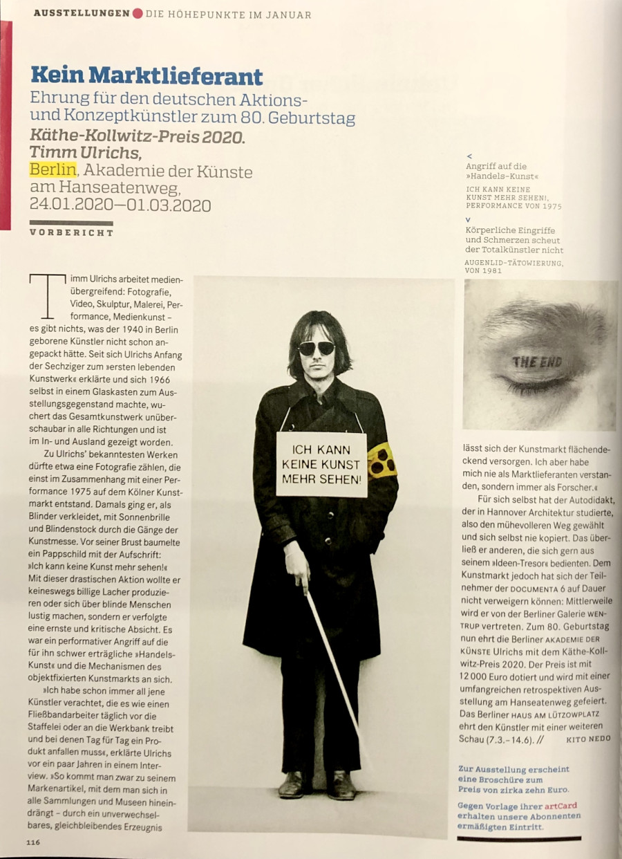 Kito Nedo: Käthe-Kollwitz-Preis 2020. Timm Ulrichs
