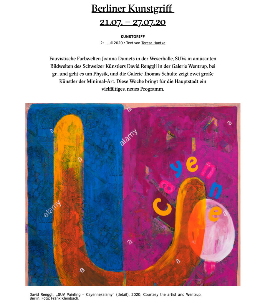 WANN: Die Ausstellung “SUV Paintings” eröffnet am Donnerstag, den 23. Juli 2020, von 11 bis 18 Uhr.