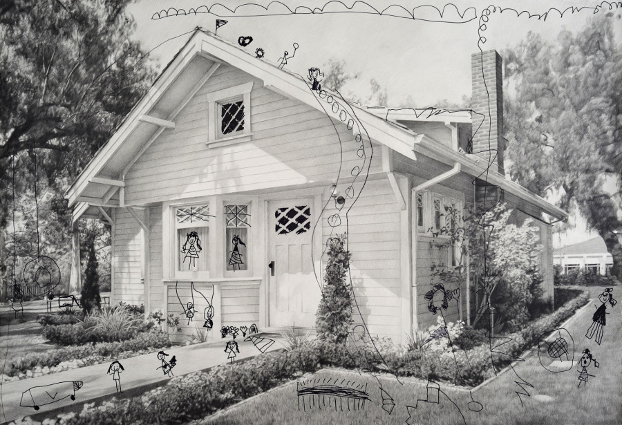 While Karl Haendel’s newest work covers a wide range of subject matter from a stack of lawnmowers to a portrait of Barbara Walters, the common thread that links these disparate images is a dialogue between memory, both personal and collective, and national identity. Many of the works on view are drawn from overlooked sources in contemporary American life—cultural leftovers the artist combs through and resuscitates in order to represent an alternate picture of American reality. Other works, like the aforementioned stack of lawnmowers, come from the artist’s personal history and experiences—a once-submerged detail from his childhood home that has floated to the surface of recollection—that could also be read, more symbolically, as the paraphernalia of American comfort, excess and, perhaps even, of the endangered middle class.
