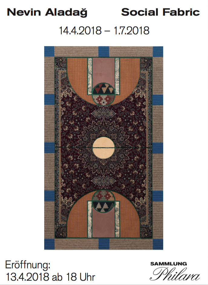 Nevin Aladağ tries to make the nature of our communities, their social structures as well as the interests of its individual protagonists herself included readable. In her series Colors, which has been an integral part of the Philara café Glas Lennarz since 2016, she covered diverse lamps by Poul Henningsen with variously coloured pantyhose. Through this procedure, the luminosity of the lamps changes, and the design icon Henningsen obtains a new interpretation. Simultaneously, the artist introduces a discourse about gender, skin colours and politics, which articulates a heterogeneous ideology. The series Pattern Matching is about the comparison of “western and oriental structures”. The lines of an American basketball court are assembled by a number of different parts of an oriental carpet. The patters are inconsistent. A complex reference system of alleged opposites such as privacy and publicity unfolds. Through the overlapping of patterns, that belong to different semantic systems western play versus oriental ornamentation.
