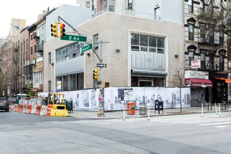 grid/2 by Peles Empire, installed on the construction shed surrounding 38 St Marks Pl.
