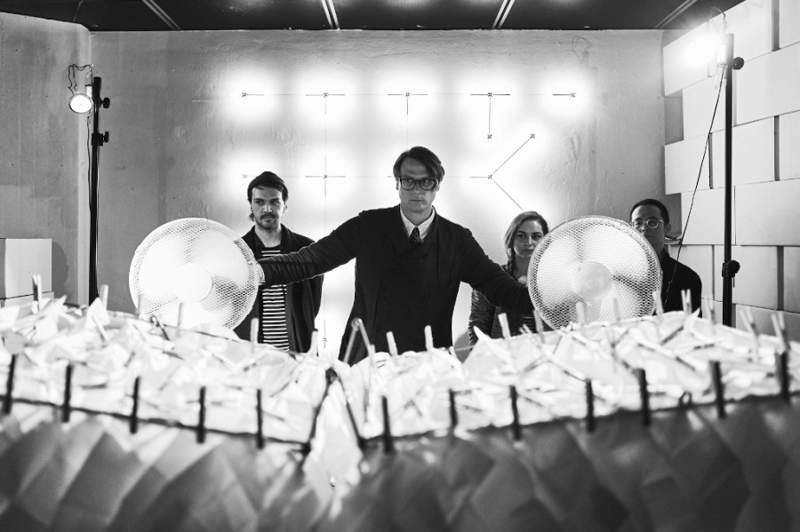 Gebannt und im ersten Moment irritiert, verfolgte der kunstinteressierte Zuschauer, wie Hildebrandt und seine Schüler bedächtig einzelne Dufttaschentücher auspackten und diese sorgfältig mit Wäscheklammern auf dem Ständer anbrachten. Sofort breitete sich im Raum ein intensiver Duft aus.