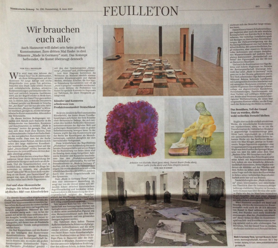 Till Briegleb: Wir brauchen euch alle, Süddeutsche Zeitung, No. 130, 8 June 2017, p. 9.